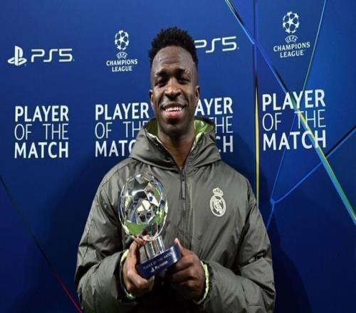 欧冠联赛阶段第7轮,皇家马德里主场6-1大胜摩纳哥,此役贡献1球2助的皇马前锋维尼修斯当选欧冠官方全场最佳球员...