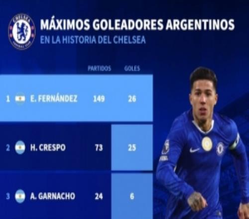 恩佐为切尔西打进26球超越克雷斯波,成为队史进球最多阿根廷球员