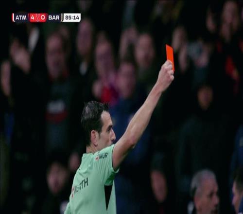 马竞全线回防,西蒙尼换上了更多的防守球员,令巴萨的推进更加困难。第85分钟,埃里克加西亚直接被红牌罚下,随即产生的各种争议,引发了一系列的冲突,裁判连续出示多张黄牌平息。