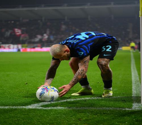 面对最近2次正面交锋,全部击败自己的死敌,国际米兰在主场也是毫无保留,祭出了352的体系,首发门将索默,巴斯托尼、阿坎吉和比塞克组成三后卫,迪马尔科、苏契奇、泽林斯基、巴雷拉和恩里克在中场一字排开,双箭头则是小图拉姆搭档劳塔罗马丁内斯。