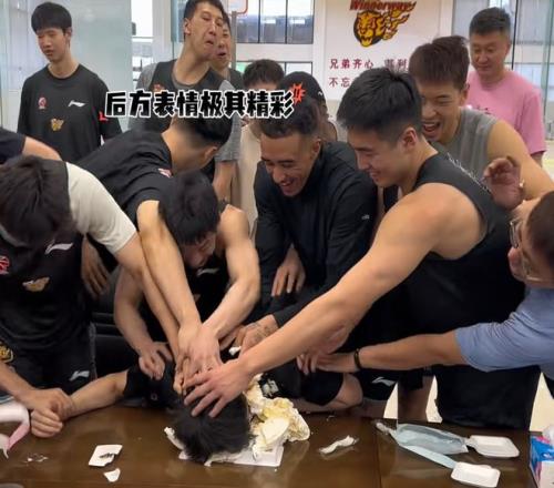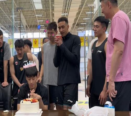 奎因还在旁边进行搞怪,在李文昊许愿的时候,他还假装在许愿,杜锋还特地拍了一下,他也被奎因给逗乐了。