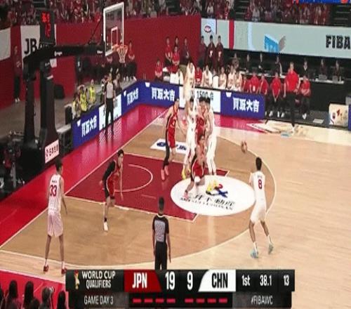 贺希宁强拔三分追至个位数!中国男篮38-47日本