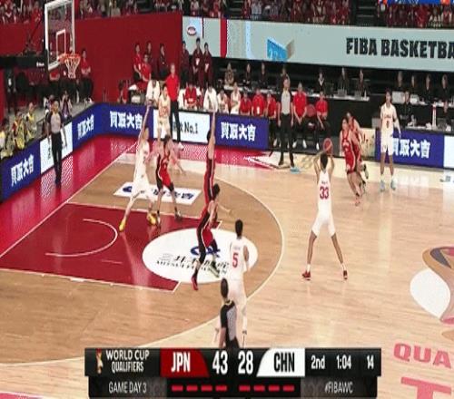中国男篮一波12-0迫近至2分分差!中国男篮45-47日本