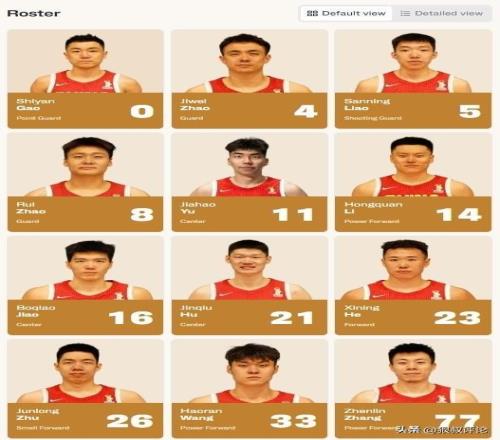 中国男篮:高诗岩、赵继伟、廖三宁、赵睿、余嘉豪 、李弘权、焦泊乔、胡金秋、贺希宁、朱俊龙、王浩然、张镇麟。