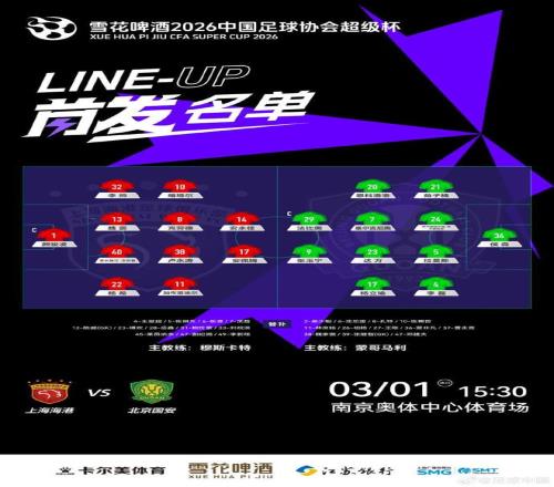 北京时间3月1日,超级杯决赛,上海海港vs北京国安。赛前足球中国官方公布两队首发站位,双方均采用4-4-2阵型。