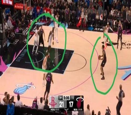 第一节,热火内线韦尔3分球外接球,方圆百里没有任何一个火箭防守球员,只好勉为其难投进了超大空位追身三分,气得乌度卡当场喊停。