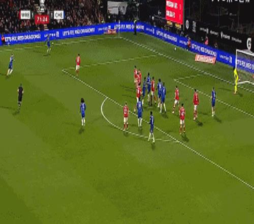 第79分钟,再次领先,温达斯远射,多伊尔脚后跟破门,切尔西1-2落后