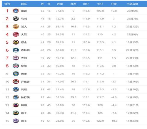 今日比赛后火箭、湖人排名互换,独行侠、鹈鹕排名互换,其他西部球队排名不变。