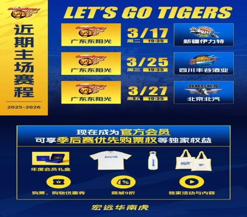 3月17日,CBA常规赛第27轮,广东东阳光将继续坐镇主场,与新疆伊力特男篮进行二番战。双方在第24轮有过一次交锋,华南虎客场2分惜败。