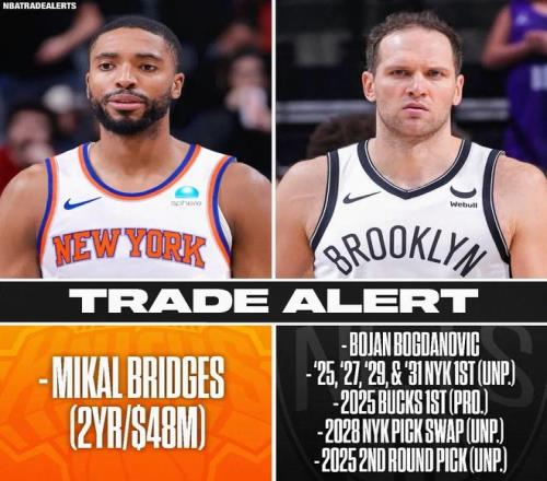 ——尼克斯送出博扬、5个首轮签、1个首轮互换权、1个次轮签