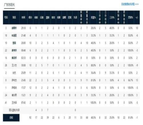 其实杜锋说的并没有错,这场比赛广东男篮主要还是输在了防守端,能够让场均只能得到81.5分的江苏男篮在这场比赛中得到93分,就充分说明了这个问题。防守质量不高,对手的命中率就会比较高,这点也体现得非常明显,江苏男篮这场比赛的整体命中率高达59%,三分球命中率也高达47.6%。
