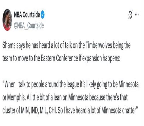Shams在节目上说道:“跟NBA圈内人聊下来,大概率是森林狼或者灰熊,更偏向森林狼,因为地理位置:森林狼、雄鹿、步行者、公牛扎堆在中部。当然,灰熊、鹈鹕也觉得自己有理由。很多人问我:会不会有球队搬迁?我报道里也写了,大概率就是森林狼或灰熊。大家还在讨论扩军选秀、受保护球员名单。但说实话,这些都是两三年后的事,到时球员名单早就变了。不过扩军选秀那天一定会很好看。”