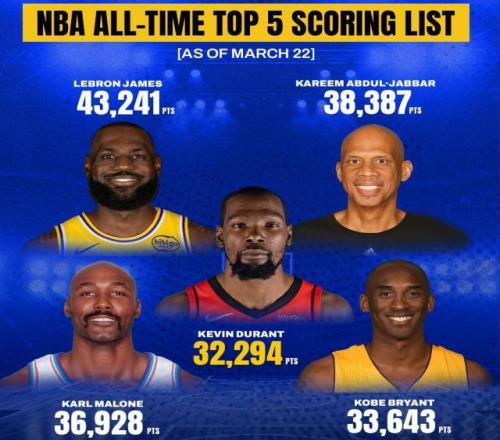 这或许是KD半开玩笑的表达,但现实来说,这位历史级得分手还有机会向上爬升几个名次呢?