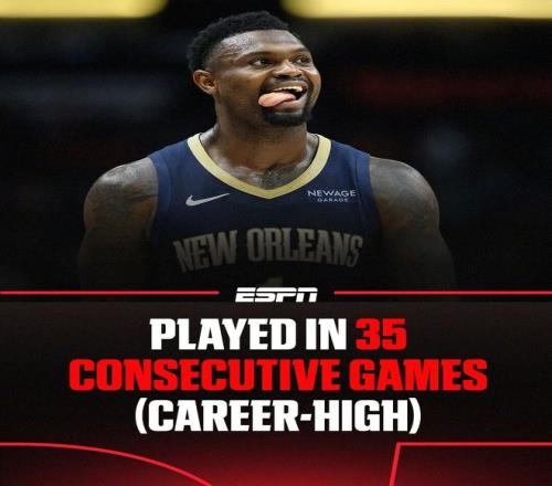 胖虎真乃神人啊,连续出场35场比赛都能让记者专门发个报道,甚至特意搞了个海报。本赛季胖虎的出勤率高达70%,别看35这个数据不起眼,但已经是胖虎生涯最长的一次连续出场纪录了。