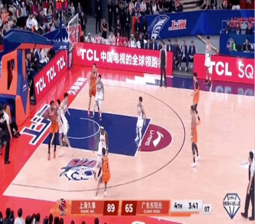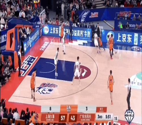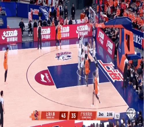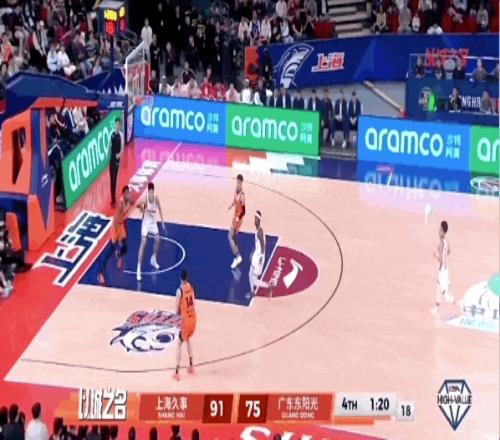 刘铮、李弘权相继命中三分球,上海男篮将分差扩大到20分。