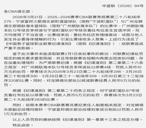 CBA重罚!李祥波因不当言论被禁赛4场,鲁吐布拉情绪激动被禁1场
