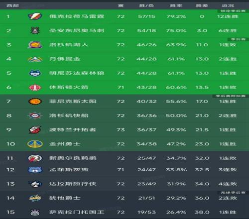 西部最新积分榜
