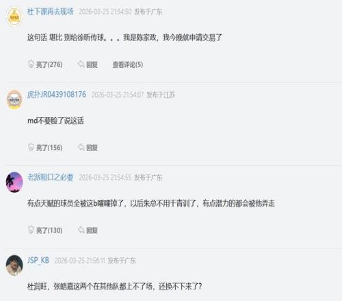 他表示:把谁换下来呢?把谁的时间调少一点合适呢?他今天表现非常不错。这样的话语出来之后球迷都怒了,在社交网站上,各个球迷都在指责杜锋不懂用人。