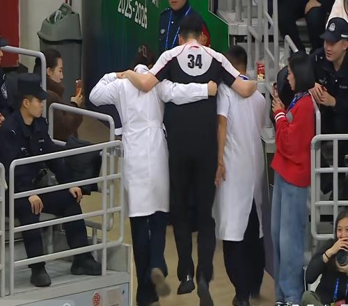 CBA赛场上,发生了罕见的一幕!在比赛中,34号裁判员跟腱拉伤,被医生搀扶离场,无奈之下,只留下2个裁判工作……CBA联...